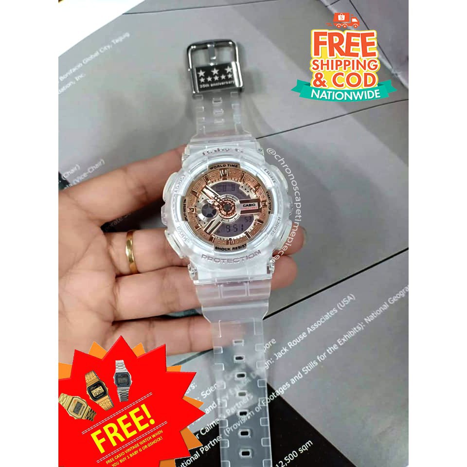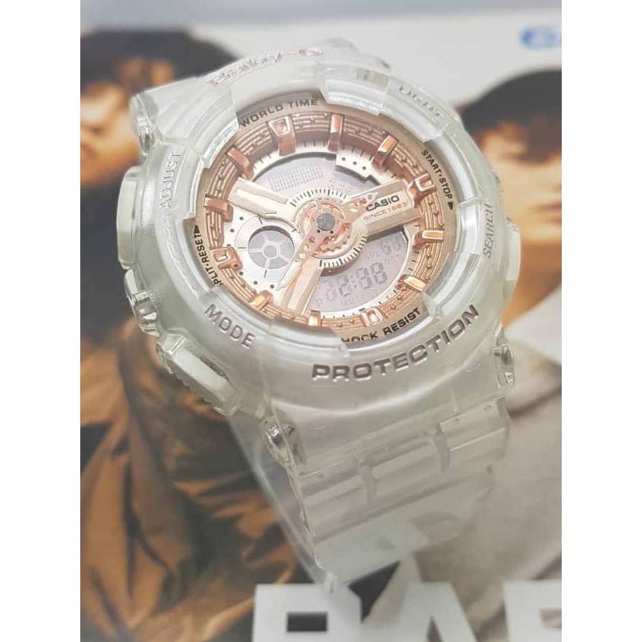 47 out of 5 stars 1172. Womens BA-110-7A1CR Baby-G Rose Gold Analog-Digital Watch with White Resin Band. From BABY-G the casual watch for active women comes a collection of new models with designs accented with rose gold metallic elements based on the popular mannish design BA-110.